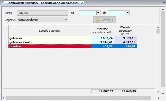 Zestawienie sprzedaży według sposobów płatności