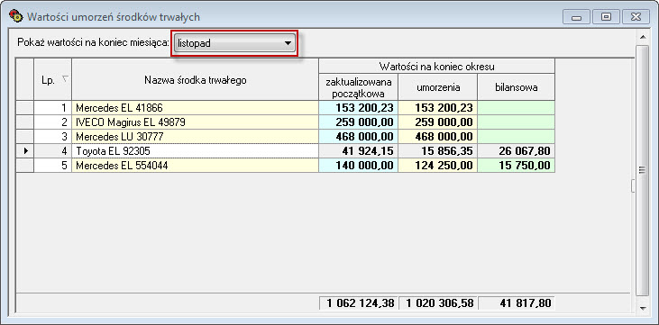 Wartość umorzenia możesz sprawdzać na koniec wybranego w filtrze