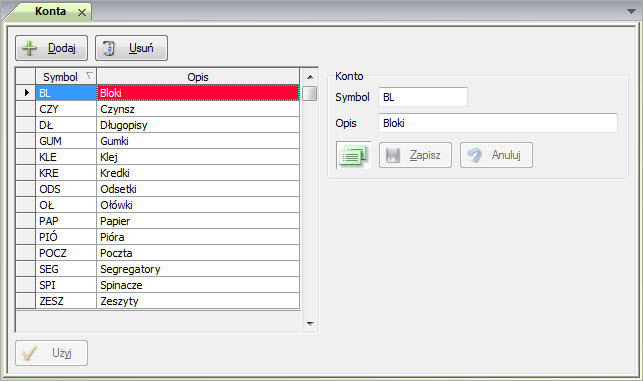 W oknie tym możesz definiować konta, które są pomocne przy