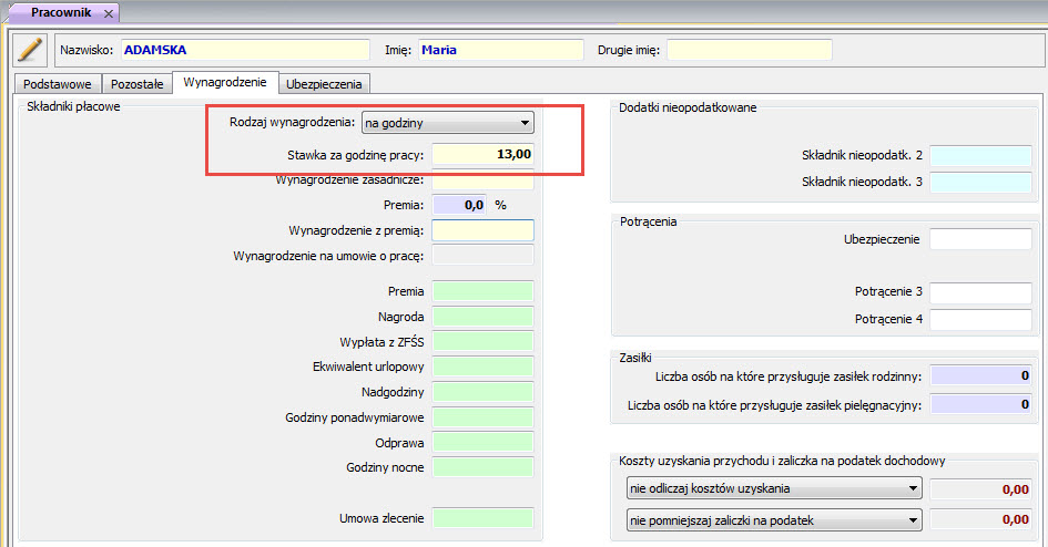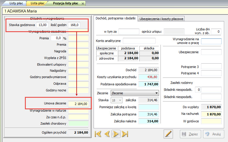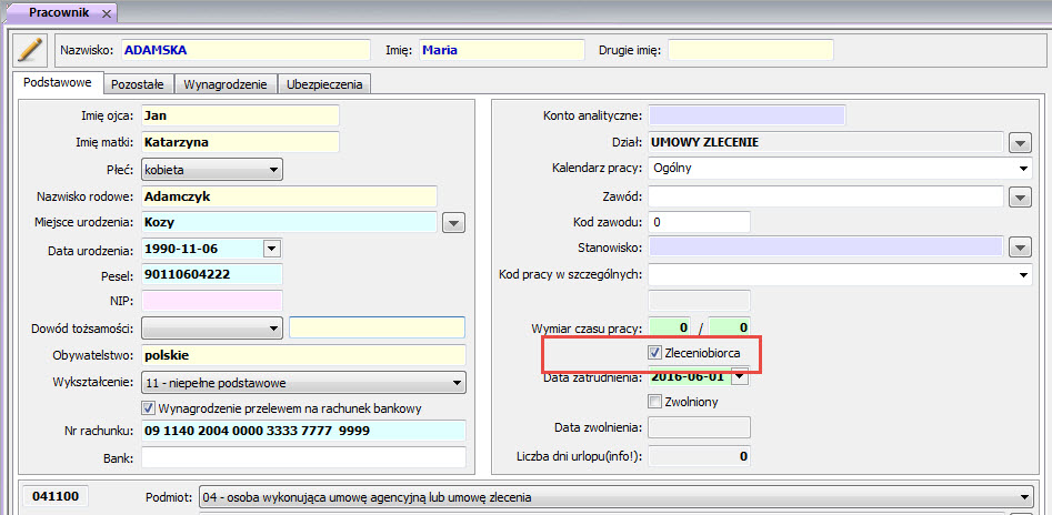 umowy zlecenia z danych o pracowniku - należy ją ręcznie wpisać na