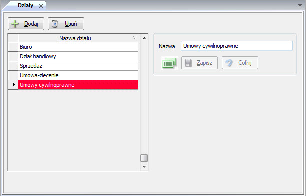 Dla umów cywilnoprawnych najlepiej założyć taki dział, żeby